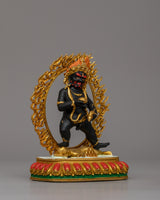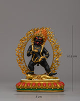 Black Dzambhala, who expresses wrathful compassion, wields enormous power in Buddhist tradition. His presence represents the ability to turn negative karma and financial difficulties into opportunities for growth and prosperity. This statue's detailed craftsmanship and rich colorwork make it both visually stunning and spiritually significant. This handcrafted Dzambhala statue is ideal for personal devotion, meditation, or as a meaningful gift for a practitioner. It represents strength, abundance, and unwavering protection.
