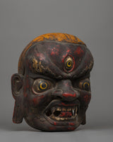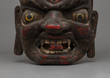Handcrafted Wooden Wrathful Mask for Ritual Decor