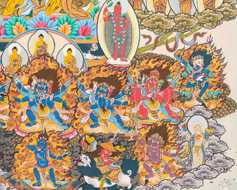 It goes without saying that every detail of a painting has a symbolic meaning. Regardless of your religious affiliation, a thangka can help you on your path to enlightenment, whether you practice Buddhism or have other religious convictions. Thangkas are paintings that depict deities with various iconographic elements and symbolism that encourage meditation on the teachings of the god they depict. Any thangka is intended to aid in the removal of the film of ignorance, which is a significant barrier to the road to enlightenment. The Thangka is revered as a holy item. They promote positivity, spread Buddhism's teachings, bring about peace, harmony, and oneness, and dispel any negative energy that may be there.