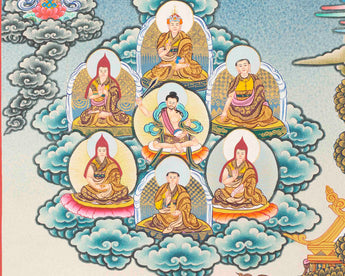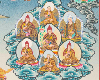 Lineage Tree is also known as " Guruparampara " which means " Line of Teachers ". The Nyingma Lineage Tree depicts the family tree of Nyingma lineage, as it were, and its function is to indicate a line of descent.
