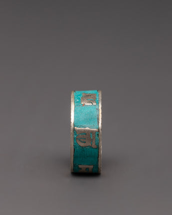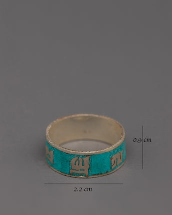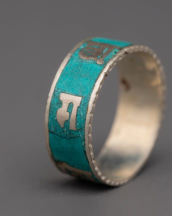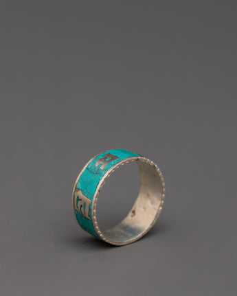 Handcrafted Turquoise Inlaid Ring | Meditation Ring with Ancient Symbol Engraving
