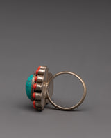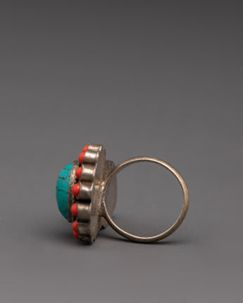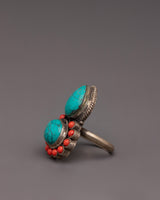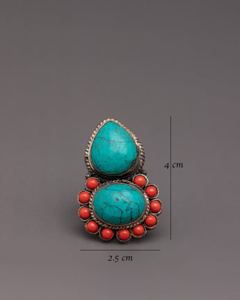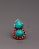 Handmade Bohemian Ring | Turquoise & Coral Vintage-Chic Look