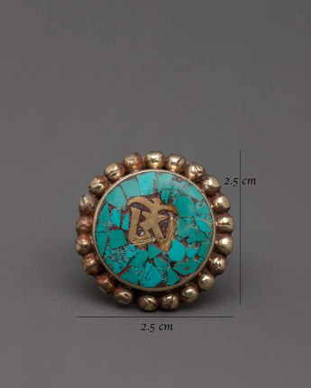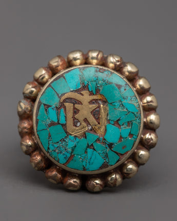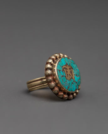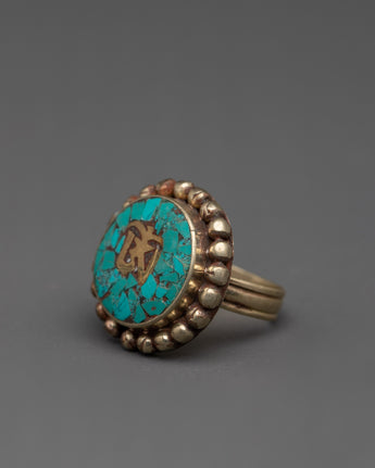 Handmade Tibetan Turquoise Ring | Traditional Tibetan Art | Meditation Accessory