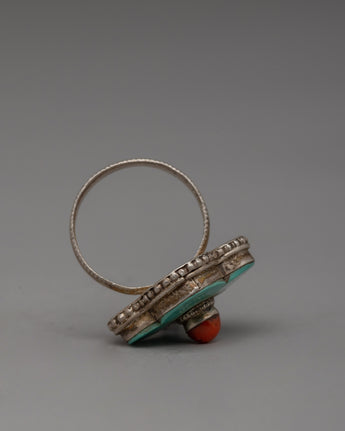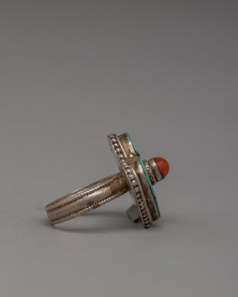 Silver Coral and Turquoise Ring | Unique Artisan Jewelry