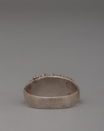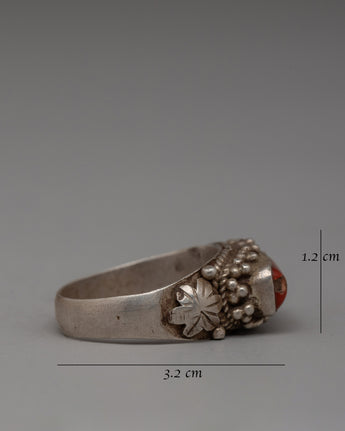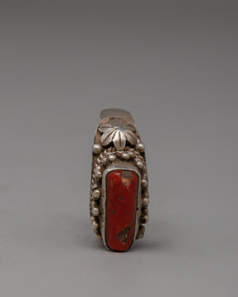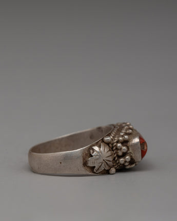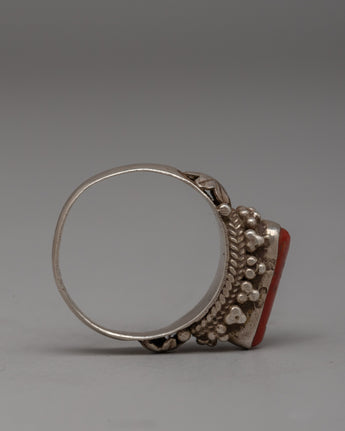 Traditional craftsmanship and elegance are reflected in the band's carefully filigree patterns and the colorful coral stone. This ring is perfect as a unique addition to your jewelry collection or an authentic present for someone special. Its timeless style looks great in both professional and informal settings.