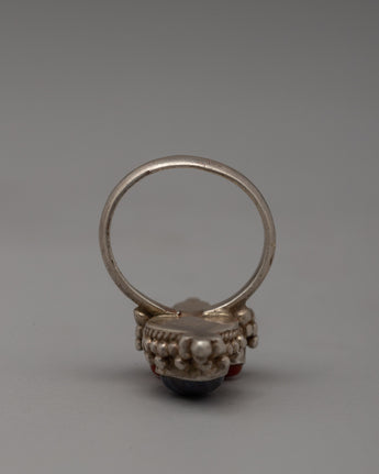 Silver Finger Ring with Copper Accents | Traditional Tibetan Sacred Jewelry