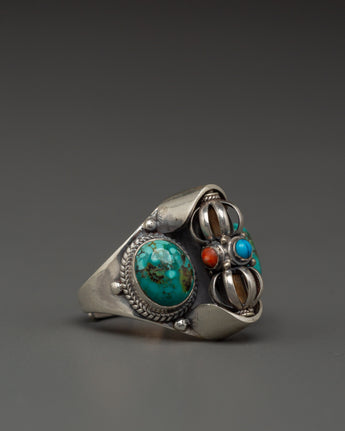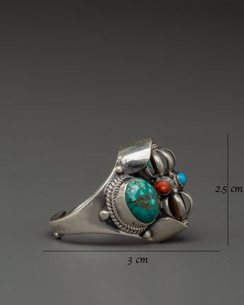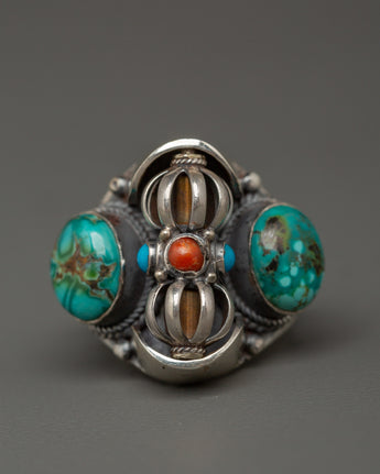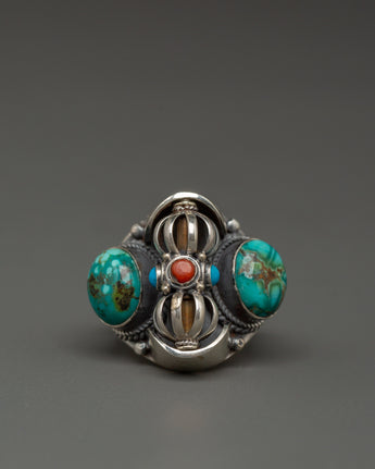 Add this sterling silver coral ring to your jewelry collection to experience turquoise and coral stones' beauty and spiritual energy. This handcrafted ring is ideal for bohemian fashion enthusiasts, spiritual seekers, or anybody searching for a thoughtful gift. This stunning accessory perfectly reflects sterling silver, coral, turquoise, bohemian, and statement rings.