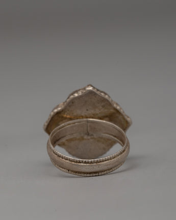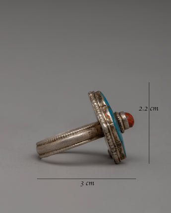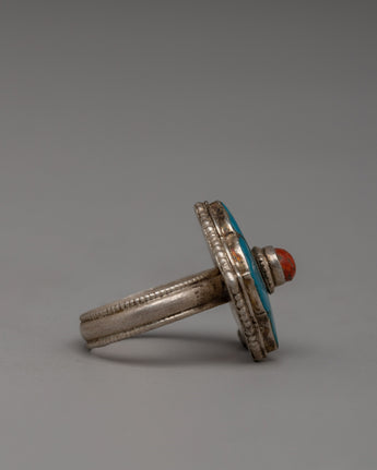 A touch of enhancement and bohemian appeal are added by the band's elaborate artistry and the bright natural stones. This ring goes well with any look and is ideal as a meaningful present or a statement item for the receiver. Its bright turquoise and coral colors make it a classic piece for any jewelry admirer.