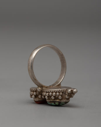 This ring is perfect for any occasion, whether you want to add a unique piece to your jewelry collection or give a meaningful present to someone important. Its vivid stones and elaborate pattern make it a striking item, and the sturdy silver assures long-term usage. This ring is ideal for anybody who values handcrafted jewelry with a touch of spiritual meaning. It brings beauty, balance, and a connection to nature into your life.