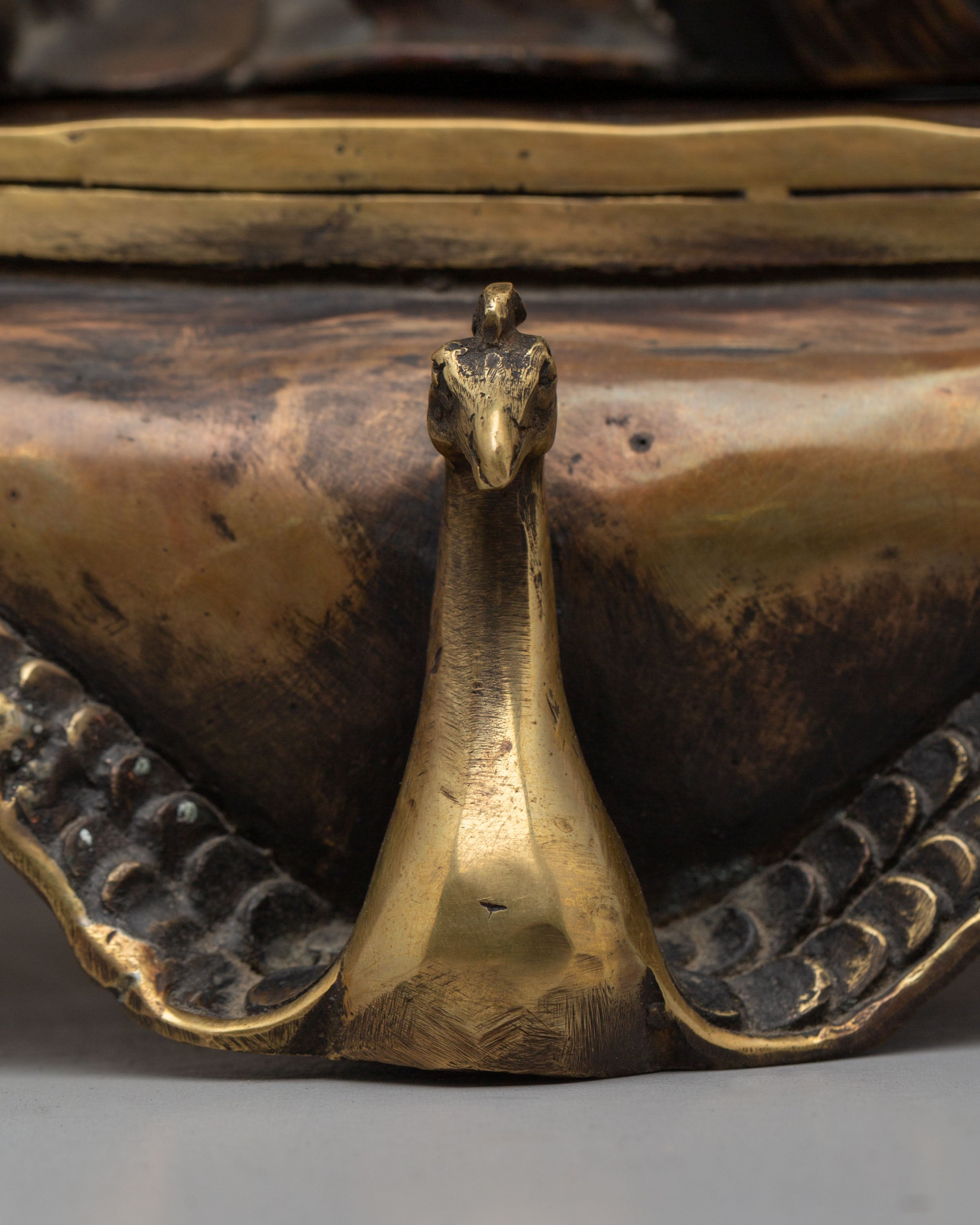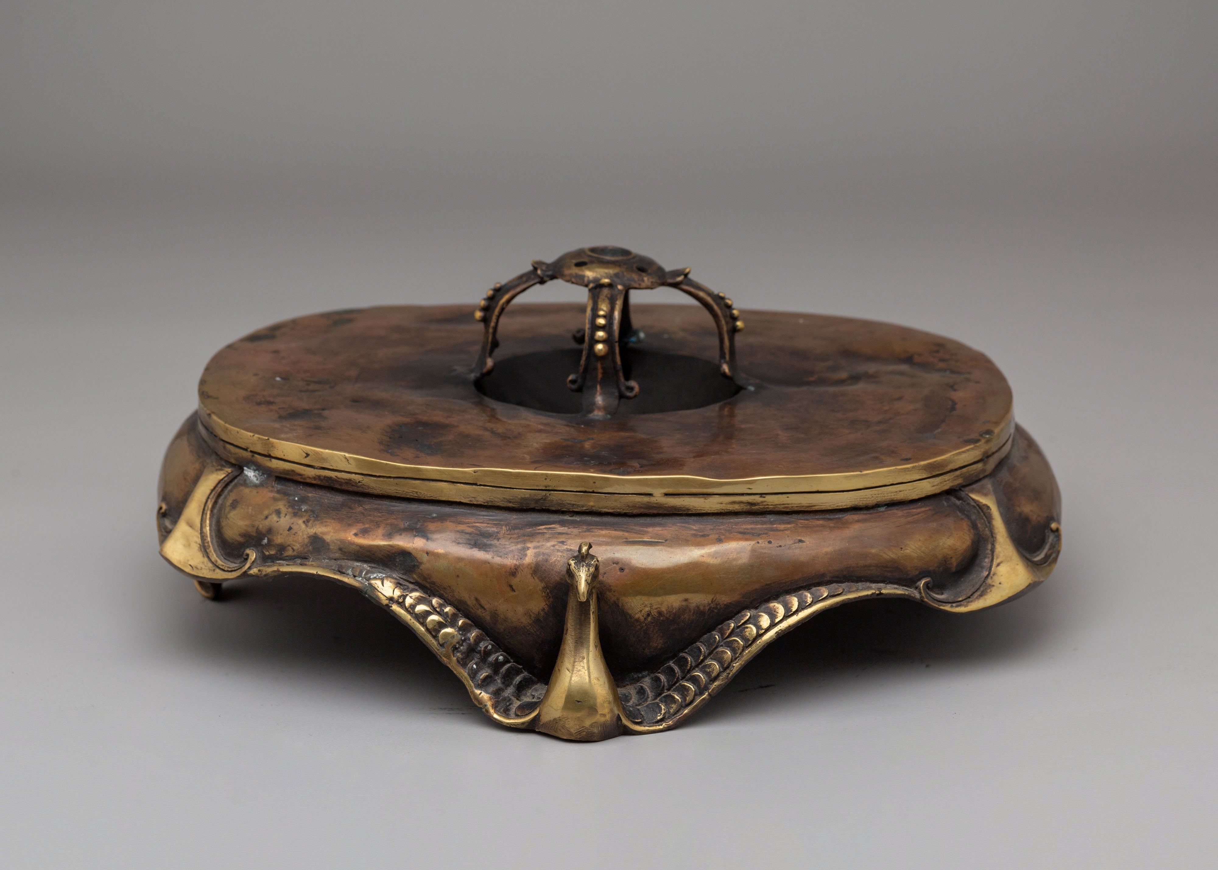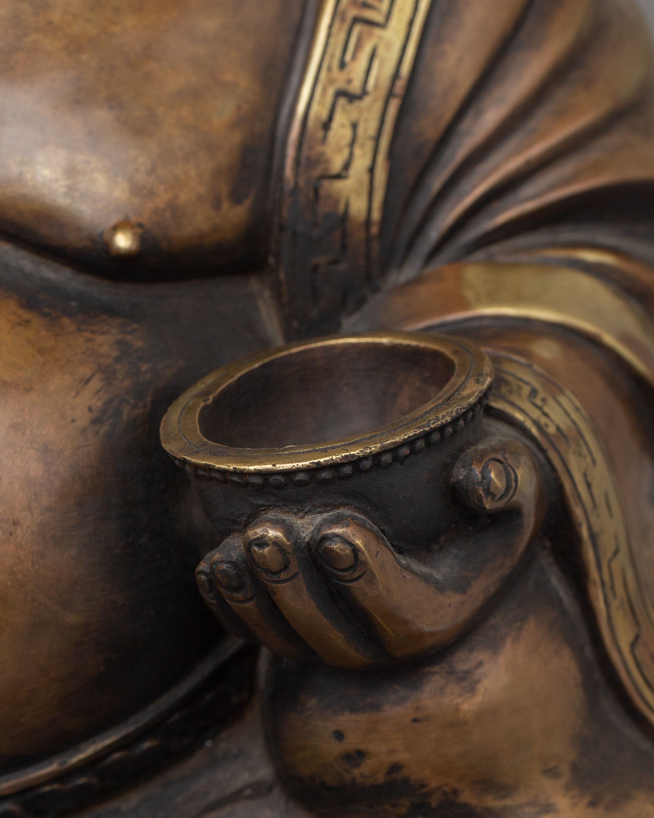 The Copper Laughing Buddha Incense Burner is a sacred decorative piece symbolizing joy, prosperity, and spiritual harmony. Measuring 32 cm in height and 27.5 cm in width, and weighing 4.48 kg, this beautifully crafted incense burner is made from a copper body, reflecting traditional craftsmanship and spiritual artistry. The Laughing Buddha is widely regarded as a symbol of happiness, abundance, and positive energy, making this piece a meaningful addition to meditation spaces, altars, and peaceful home environments.