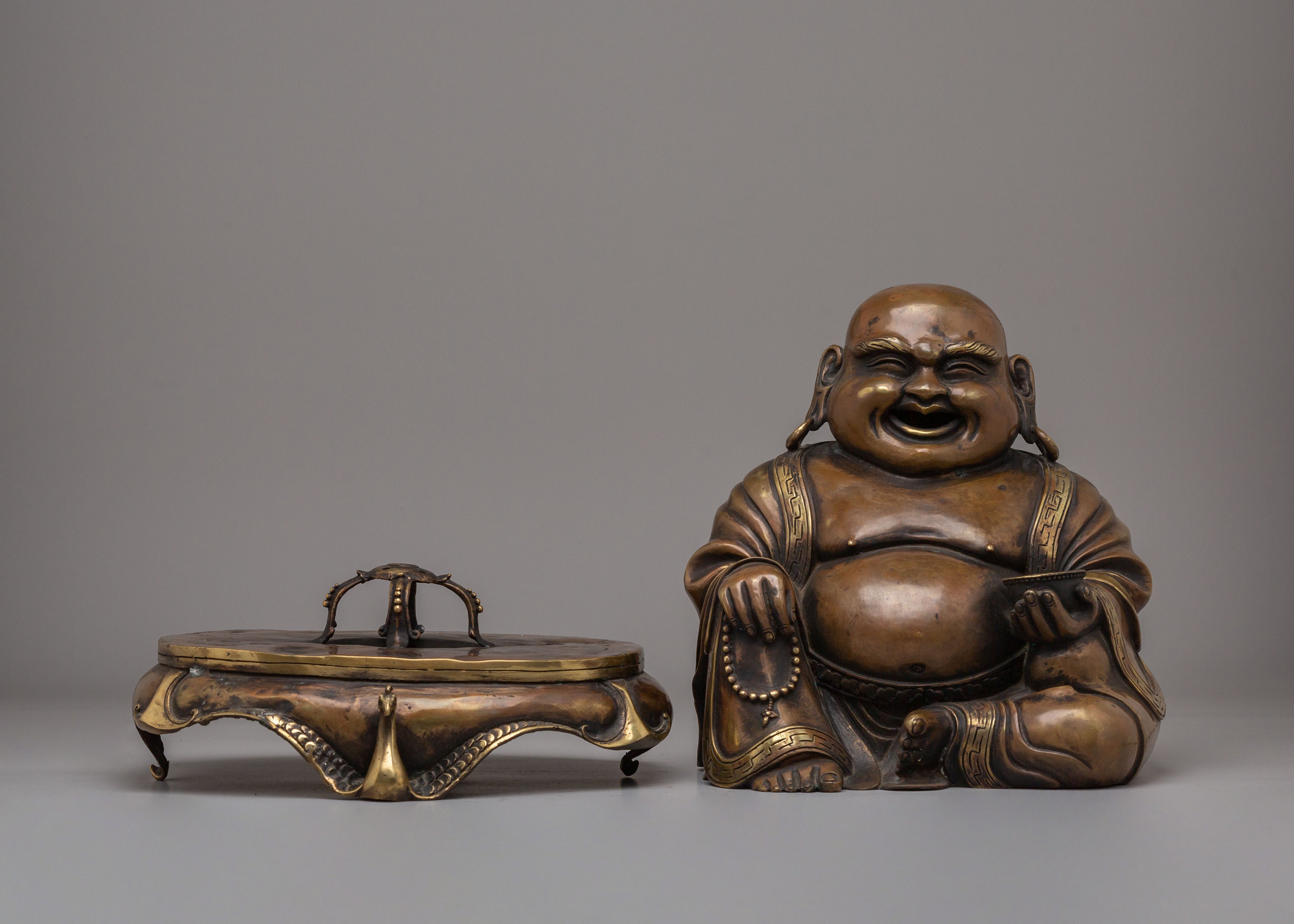 Copper Laughing Buddha Incense Burner | Decorative Incense Burner for Meditation