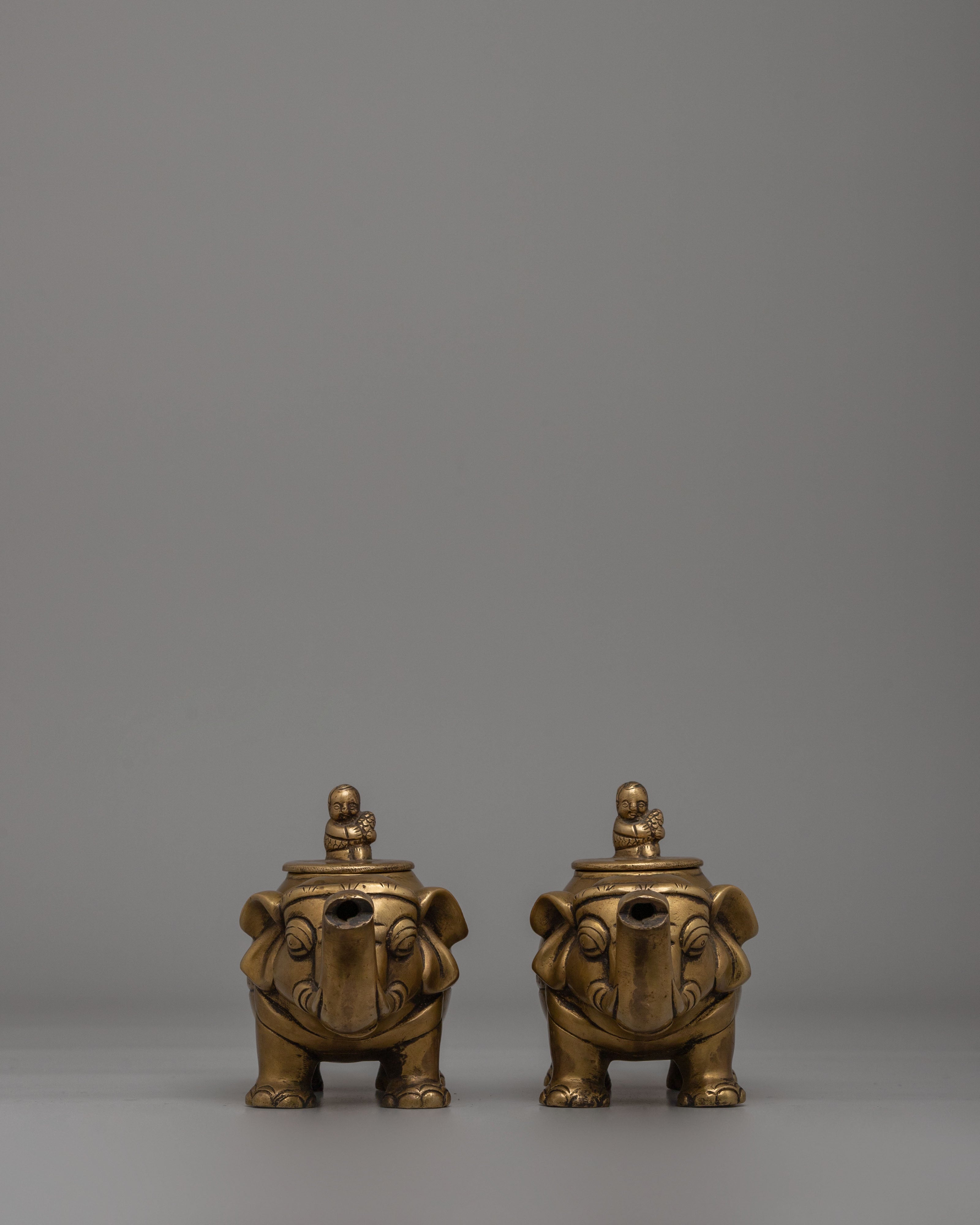 The Himalayan Elephant Incense Burner is a stunning handcrafted brass piece that combines artistry with spirituality. Each elephant figure weighs 1.8 kg, making it both sturdy and elegant. The set weighs 3.59 kg, demonstrating the skill and attention to detail involved in its creation. Crafted from brass, this incense burner set holds incense sticks, creating a serene, peaceful atmosphere in your home.