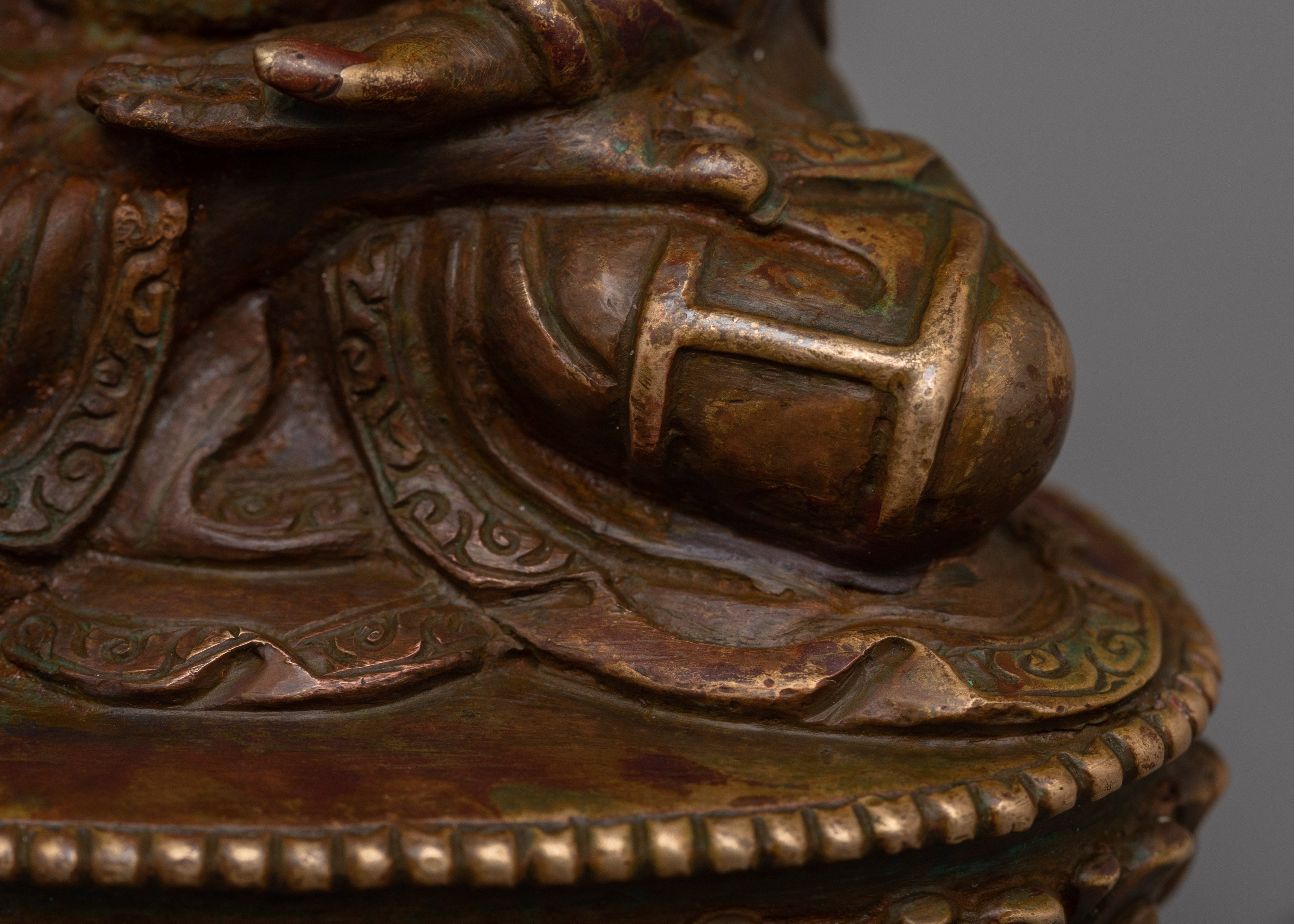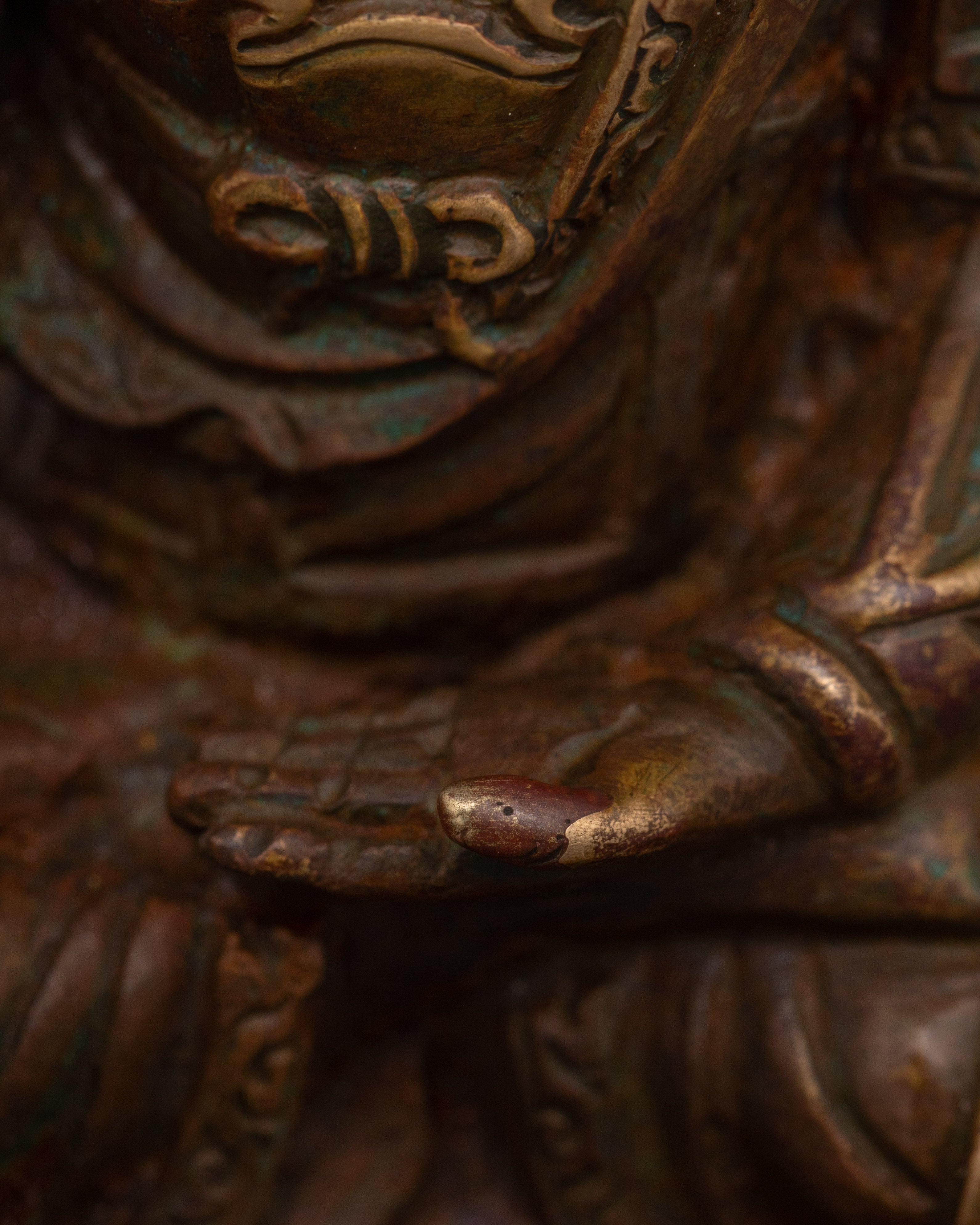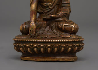 The 4.1 Inches Shakyamuni Buddha Statue portrays the historical Buddha, carefully handcrafted to symbolize Shakyamuni's peace and wisdom. This statue is portrayed with an oxidized copper body, Which stands 10.5cm in height and 7cm in base. Designed by talented Nepalese artisans, this detailed sculpture is ideal for altars, meditation areas, or as a meaningful decor item for individuals seeking awareness in their daily life.