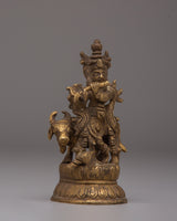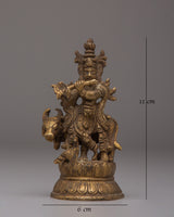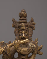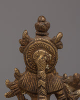 The Brass Krishna Statue is an exquisitely sculpted portrayal of Lord Krishna, Hinduism's adored divinity of love, compassion, and divine fun. This statue is crafted of brass and measures 11 cm in height by 6 cm in width, weighing 0.28 kilograms. The meticulous craftsmanship depicts the essence of Krishna playing his flute, representing the divine connection between the holy and the mundane. It is an excellent addition to any Hindu altar, meditation room, or sacred spot, providing spiritual energy and peace.
