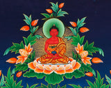 Hand-Painted Buddhist Deity Manjushri Thangka with Amitabha Buddha