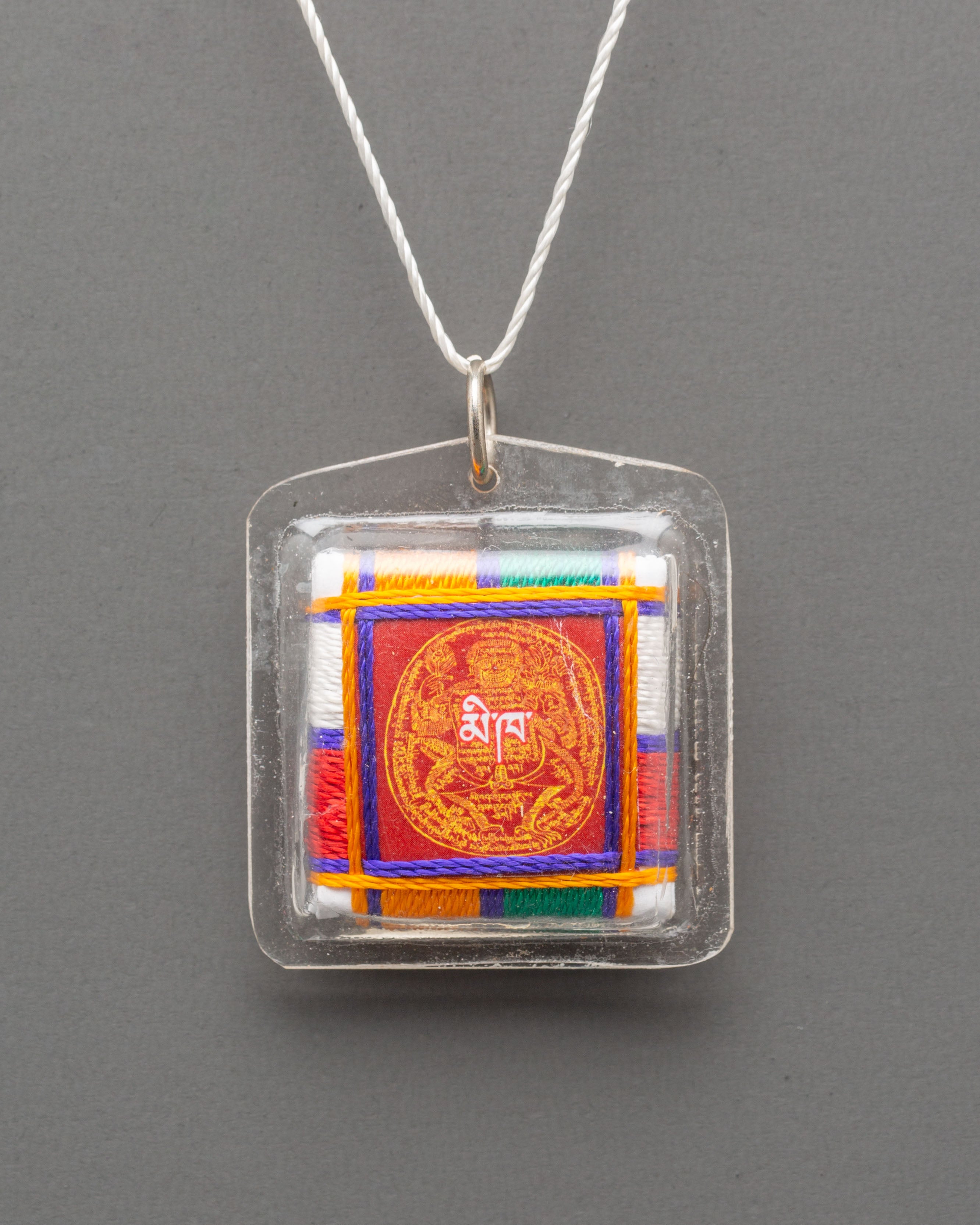 Crafted in the traditional style, this buti features colorful wrapped threads around a sacred image, carefully sealed in a plastic cover for everyday use. Size 4.5cm (H) x 4cm (W); weight 0.006kg. Materials: Plastic Cover, Canvas, Thread. Artisans create these portable talismans to channel positive energy and ward off obstacles—an ideal Buddhist talisman for travelers, meditators, and thoughtful gift-givers.