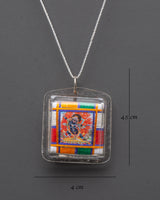 This Chana Dorji Buti for Accessory is a sacred Tibetan amulet created with reverence to Vajrapani (Chana Dorji), the guardian and embodiment of Buddha's power. This lightweight pendant measures 4.5cm in height and 4cm in breadth, weighing only 0.004kg. It features a canvas image of Chana Dorji housed in a clear plastic cover and wrapped in brilliant multicolored threadwork. The blazing picture behind the god represents the annihilation of ignorance and fear. In contrast, the vibrant colors represent the five sacred elements—earth, water, fire, air, and space—which individually offer harmony and balance to the wearer.