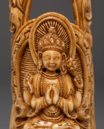 Chenrezig Bone Hand-carved Statue | Four-Armed Avalokiteshvara