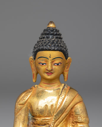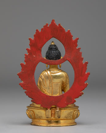 This Copper Statue of Ratnasabhava is a beautifully handcrafted spiritual piece that brings the qualities of prosperity and wisdom into your space. Standing at 12.5cm tall and 8.5cm wide, weighing 0.34kg, the statue is made from a copper body and is gold-plated. The gold finish enhances the Buddha's serene, regal appearance, while the copper core ensures durability and timeless beauty. The primary keyword “Copper Statue of Ratnasabhava” is seamlessly included to boost SEO ranking, helping customers find this meaningful Buddhist statue with ease.