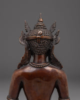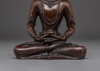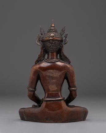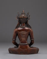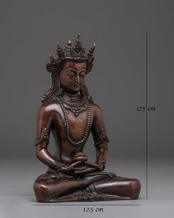 Crown Amitabha Buddha Sculpture is handcrafted from oxidized copper. Measuring 6.9”/17.5cm in height and 4.9”/12.5cm at the base, it weighs 0.96 kg. Amitabha Buddha, the Buddha of Infinite Light, radiates peace, compassion, and the promise of rebirth in the Pure Land. Perfect for small altars, personal meditation spaces, or as a meaningful spiritual gift.