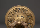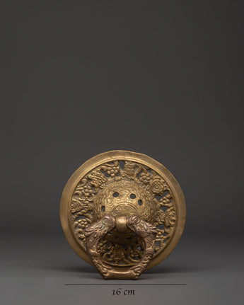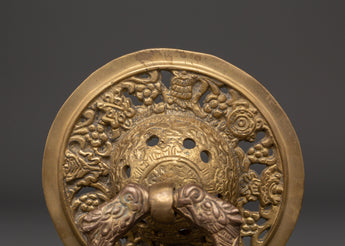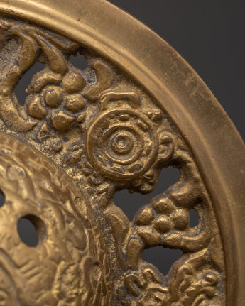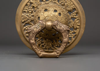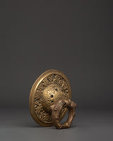 Welcome guests in style with this Handcrafted Brass Door Knocker Set, expertly constructed to add a bit of classic appeal to your property. Each knocker has a finely sculpted, flowery, and decorated pattern, emphasizing the superb craftsmanship characteristic of Nepali craftsmanship. With a diameter of 16 cm and a single weight of 1.302 kg, these knockers express strength and elegance. The set's overall weight of 2.536 kg gives it a commanding presence on any door, making it an excellent choice for grand entrances and doors.