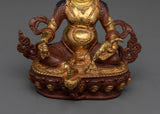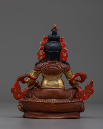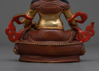 Introducing our Dzambhala Handmade Oxidized Small Statue, manufactured in Patan, Nepal. Crafted from quality oxidized copper and embellished with 24K gold, this item perfectly captures the essence of Nepalese work. The depiction of Dzambhala, the god of wealth and compassion, in a calm and authoritative pose represents prosperity and the removal of obstacles. The fine details and vivid acrylic and gold paintings showcase our artists' excellent skill, amplifying the statue's heavenly beauty and spiritual importance.