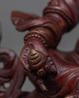 This Dzambhala with Oxidized Copper Body Statue, masterfully crafted from oxidized copper, represents the deity of wealth, prosperity, and abundance in Tibetan Buddhism. Seated in a powerful and regal posture. This statue is sitting at Size 5.5”/14cm (Height) x 4.3”/11cm (Base), Weight: 0.648 kg.