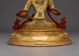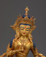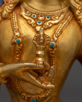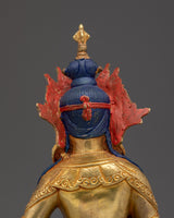 Enlightened Deity Vajrasattva is crafted from copper, adorned with 24K gold gilding, intricate gold and acrylic paintings, and inlaid gemstones. Measuring 9.8”/25cm in height and 8.5”/21.5cm at the base, it weighs 1.98 kg. Vajrasattva, the embodiment of purification in Vajrayana Buddhism, is a powerful support for meditation, spiritual cleansing, and inner renewal, making it an ideal addition to altars or sacred spaces.