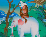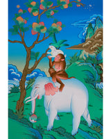 This vibrant Four Harmonious Friends artwork is hand-painted on high-quality cotton canvas, using bright acrylic colors and accented with shimmering 24K gold. Created in the traditional Nepali style, this thangka captures the spirit of harmony and interconnectedness among all living beings. The lively colors and careful detail showcase the talent of the Nepali artist, making the painting a meaningful and beautiful addition to any collection.