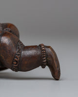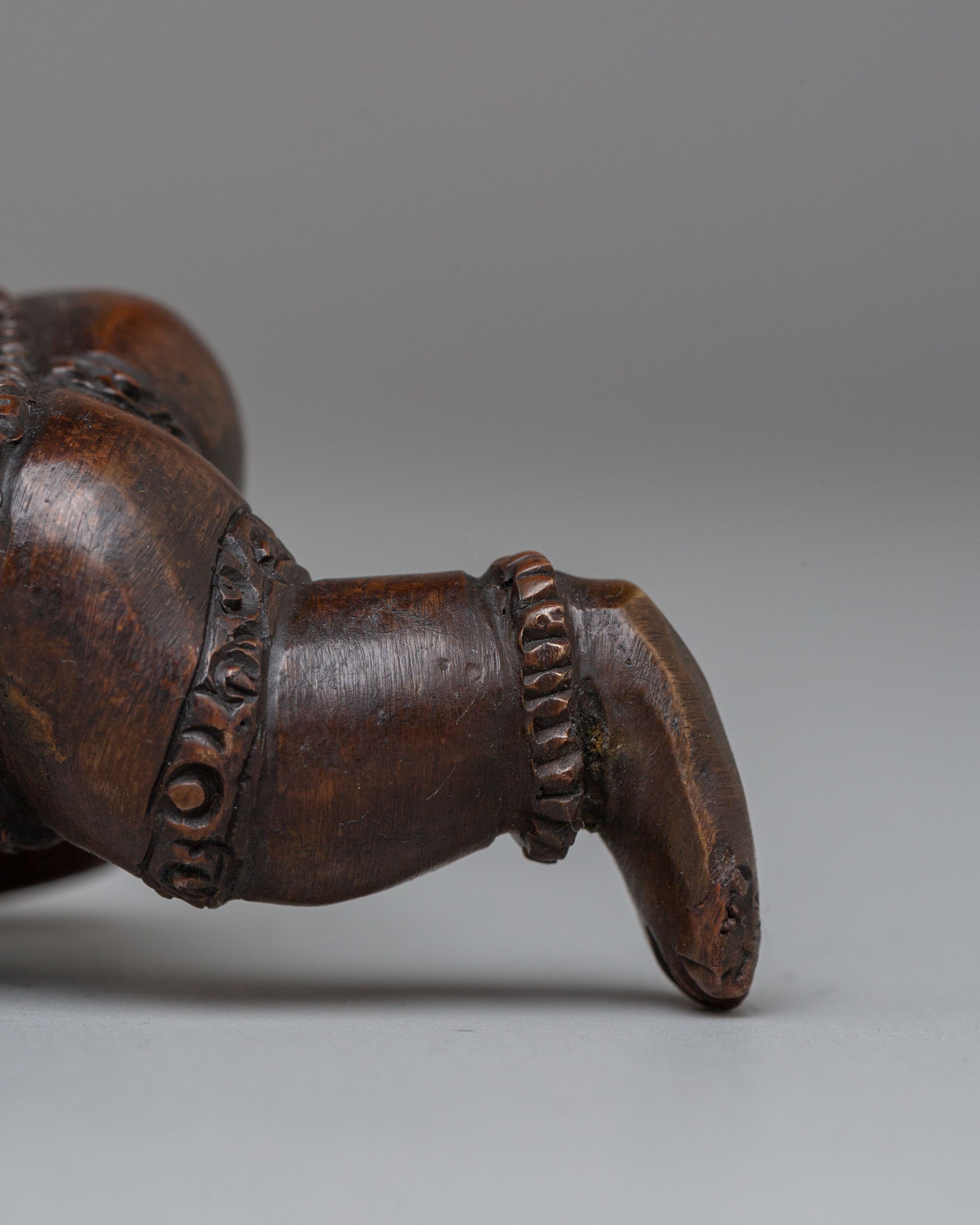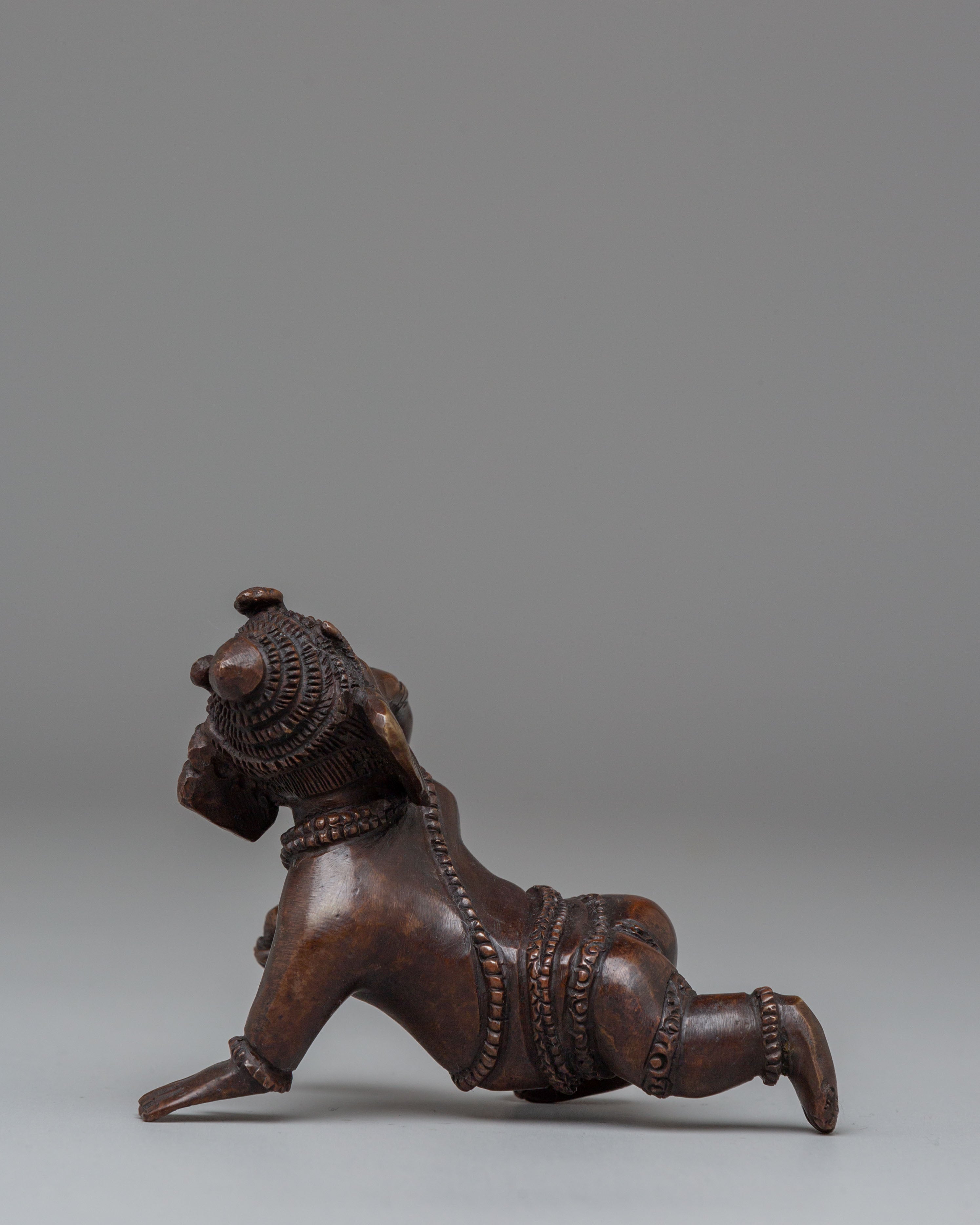 The statue features beautifully carved details, from the gentle curve of Ganesha’s trunk to the intricate patterns on his crown and attire. The oxidized finish enhances the depth of each motif, giving the sculpture a warm and expressive character. Traditional elements such as the modak, lotus, and protective mudra further enrich the symbolism, connecting the artwork to centuries of devotional craftsmanship and cultural significance.