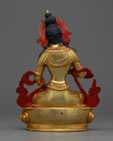 This beautiful statue has a copper body that has been skillfully crafted and is gilded in 24K gold. Gold and acrylic paintings accentuate the fine features of Vajrasattva's countenance and the elaborate patterns on his attire, giving the picture more depth and vitality. Its substantial presence and weight of 0.644 kg make it perfect for any area used for spiritual development, meditation, or introspection.
