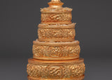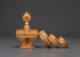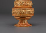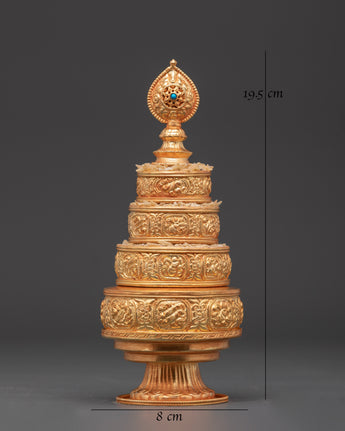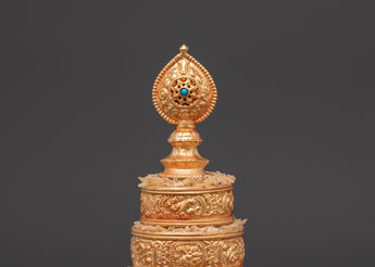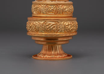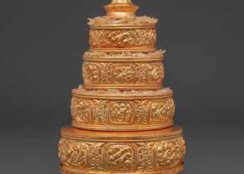 Enhance your spiritual practice with the Gold Plated Offering Mandala Set, a beautifully handcrafted ceremonial item used in Tibetan Buddhist ceremonies. This mandala set is crafted from copper and finished with a rich, bright gold plating. It measures 19.5cm in height, 8cm in breadth, and weighs 0.22kg, making it ideal for both personal and temple use. Mandalas have traditionally symbolized the sacred universe, and offering them during puja rites is a respected gesture of generosity, merit-making, and devotion in Buddhist culture.