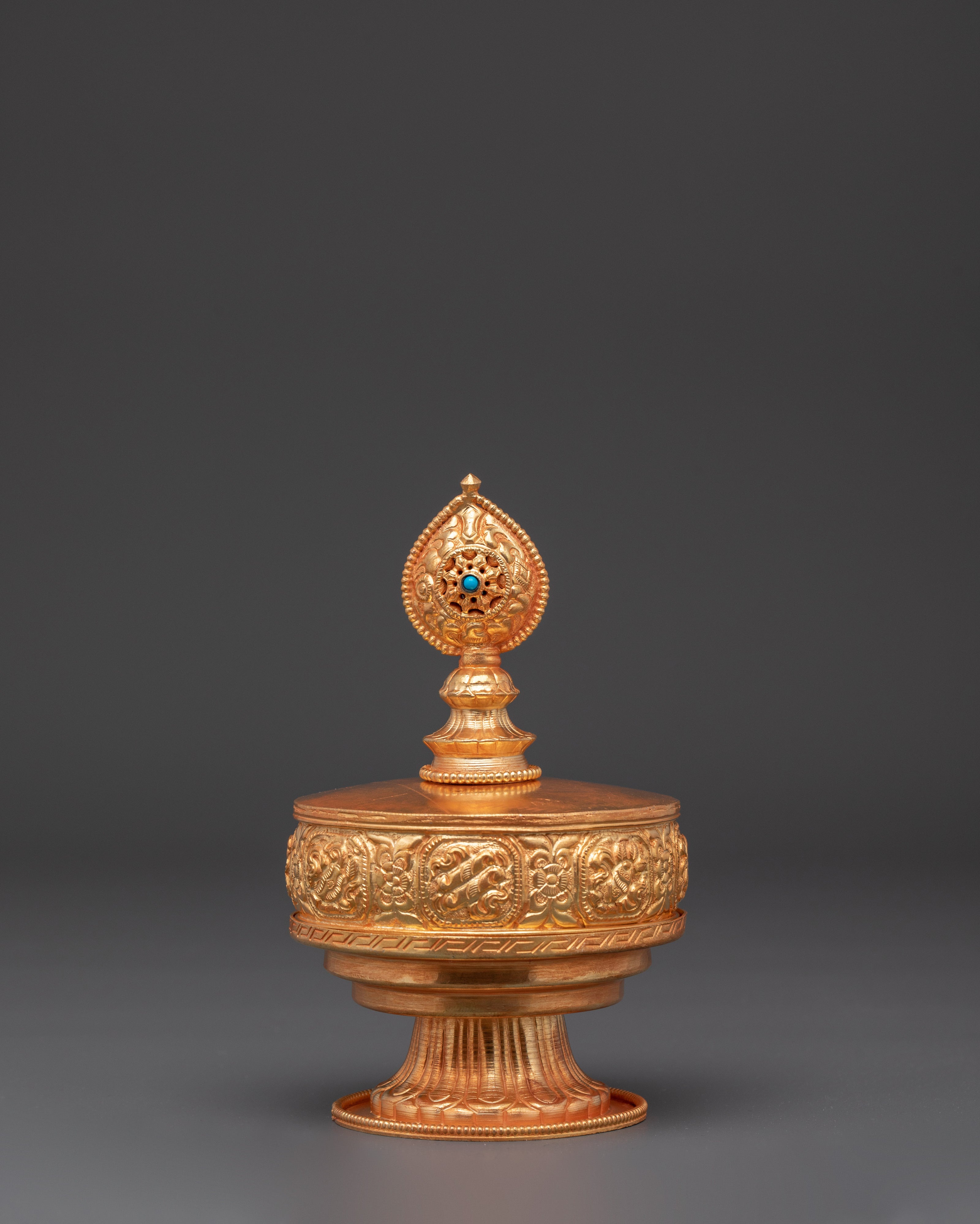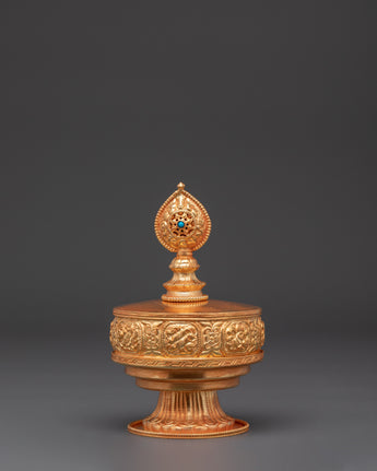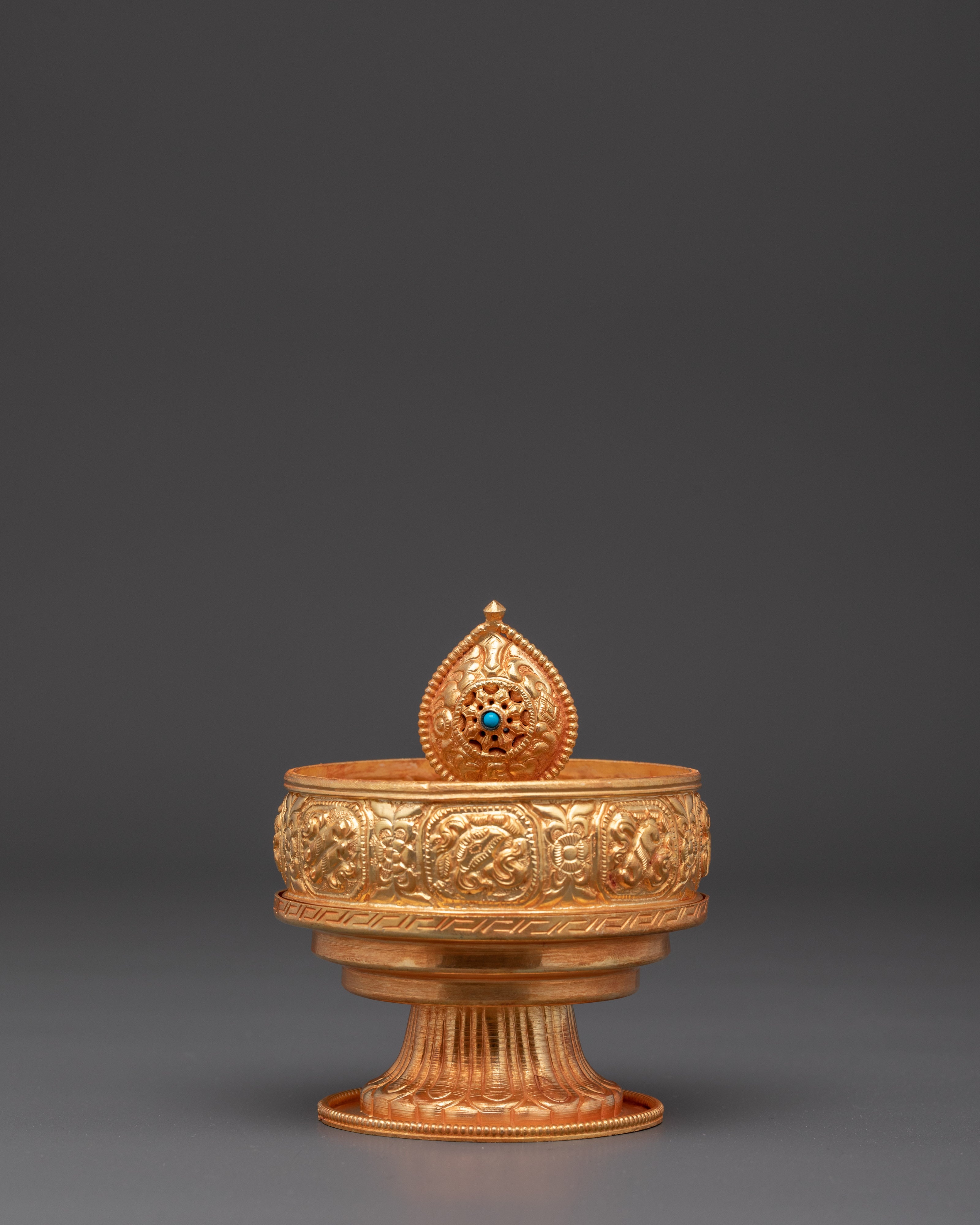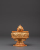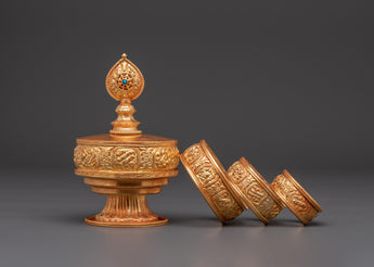 This Tibetan Buddhist Ritual Mandala Set is perfect for altar offerings, meditation areas, or as a significant spiritual decoration. It exudes purity, wisdom, and compassion, brightening the mood of your home shrine, yoga room, or prayer nook. Incorporating this gold-plated mandala offering set into your regular meditation or prayer routine helps promote mindfulness and inner serenity. This ceremonial set represents Buddhist ritual practices and traditional Tibetan art, making it an ideal spiritual gift for both practitioners and collectors.