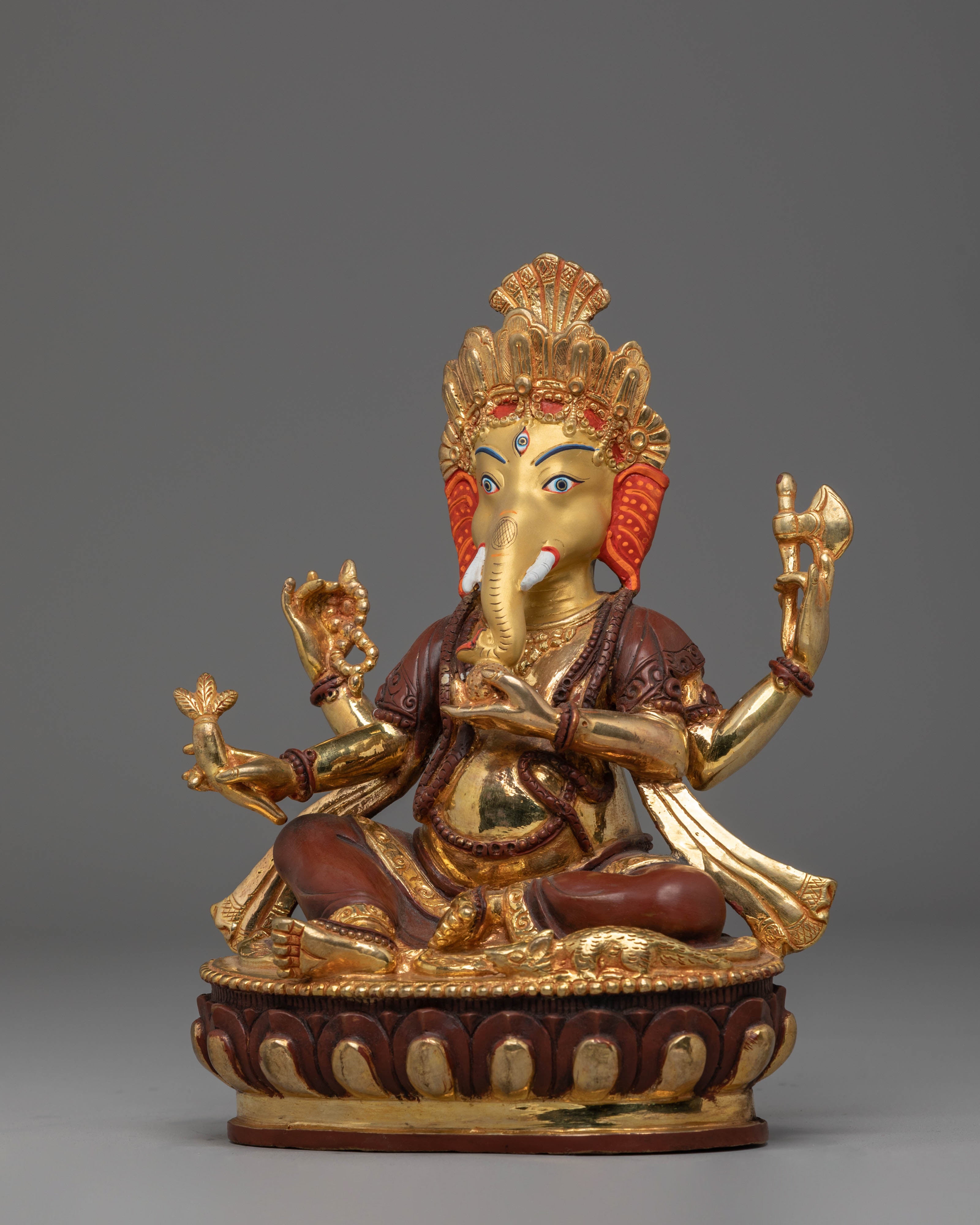 The popularity of Buddhist Ganesha extends beyond the spiritual. Ganesha is a Sanskrit name for the protector of prosperity and the remover of hindrances in Tibetan Buddhism. He is Vinayaka, a directional Protector. Avalokiteshvara persuades Ganesha to become a Dharma Protector in one of the Tantra stories.