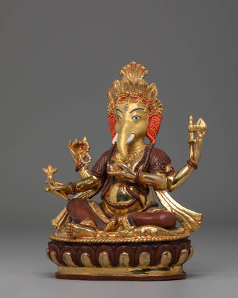 Golden Ganesh Wealth Deity Statue | Hindu God of Prosperity & Wisdom