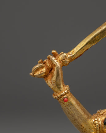 Seated in padmasana on a lotus base, Manjushri holds a flaming sword in his right hand, symbolizing the cutting of ignorance, and a lotus flower in his left hand, which supports the sacred prajnaparamita sutra, representing transcendent wisdom. This compact yet powerful statue is ideal for study areas, meditation spaces, or sacred collections that inspire insight, clarity, and spiritual growth.