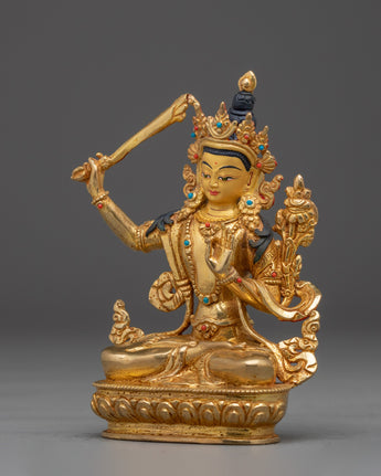 Peaceful Golden Handmade Statue of Manjushri for Meditation