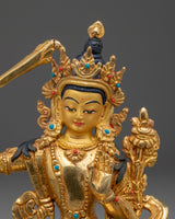 Golden Handmade Statue of Manjushri | Wisdom Bodhisattva
