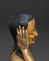 Handmade Golden Statue of Milarepa | Gold-Plated Copper Milarepa Statue for Meditation