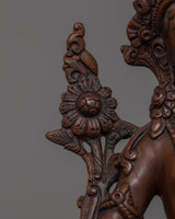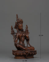 This handcrafted Green Tara statue stands at 5.9”/15cm (Height) x 4.7”/12cm (Base). Made from an oxidized copper body, it showcases exquisite craftsmanship by skilled artisans from Nepal. This intricately detailed sculpture is perfect for altars, meditation spaces, or as a meaningful décor piece for those seeking mindfulness and spiritual awareness in their daily lives.
