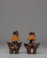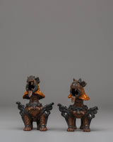 Handmade Guardian Lion Sculpture Set | Himalayan Protective Decor