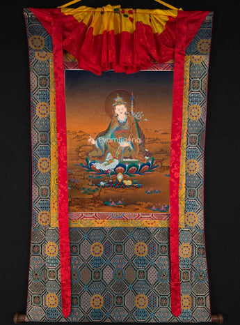 Guru Padmasambhava Thangka Print with Brocade | Tibetan Thangka Canvas Digital Print