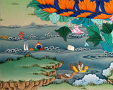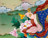 Embark on a spiritual journey guided by the luminous presence of Guru Rinpoche, The Lotus Born Guru, through our captivating Thangka Print. Crafted with devotion on the finest cotton matt canvas using the revered giclée technique, this masterpiece channels Guru Rinpoche's divine energy with remarkable detail. Each brushstroke on the canvas breathes life into his essence, reflecting his profound wisdom and spiritual guidance. The tactile allure of the canvas is a bridge to the sacred, while the giclée method ensures every color shade and nuance is captured authentically, transcending mere visuals. As you welcome the Guru Rinpoche, The Lotus Born Guru Thangka Print into your space, you're not merely adorning it with art; you're inviting the transformative energy of Guru Rinpoche. It's an experience that goes beyond aesthetics; it's a dialogue with spiritual insight, a tapestry of blessings, and a radiant addition to both your spiritual path and artistic appreciation.