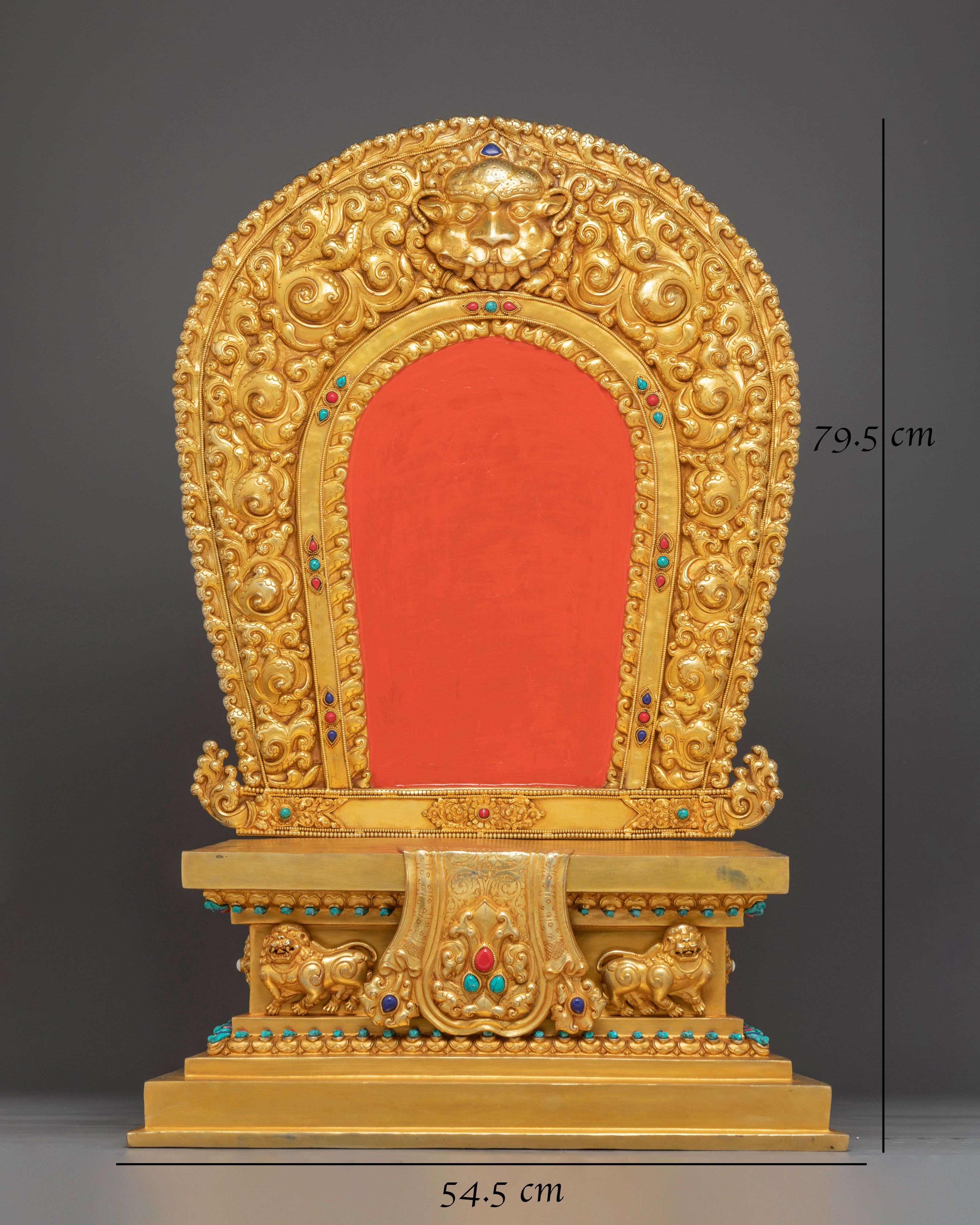 This Hand-Carved Buddhist Throne is an exquisite work of sacred art, crafted to embody reverence, devotion, and beauty. Designed to hold a Buddha or deity statue, the throne symbolizes the seat of enlightenment, representing spiritual authority and purity. Expertly handcrafted from copper and gold-plated to perfection, it shines with divine brilliance, making it an ideal centerpiece for temples, monasteries, or home altars. The throne stands tall at 79.5 cm, with majestic proportions that enhance the presence of any sacred statue placed upon it.