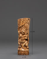 This magnificent, Hand-Carved Mahakala Bone Statue depicts Mahakala, the Tibetan guardian deity known for his powerful protection and ability to overcome obstacles. This delicately hand-carved figure measures 12cm in height, 4cm in width, and weighs 0.14kg. It is constructed of sourced buffalo bone. Mahakala, in his form, represents the wrathful aspect of compassion, exerting his power to defend the dharma and purify the mind of harmful energies. The natural, grounded character of buffalo bone gives spiritual depth and strength to the statue, making it an effective tool for meditation or presentation.