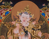The thangka is painted on cotton canvas using acrylic colors, allowing vibrant, detailed depictions of the deities to come to life. The acrylic colors bring out the rich, glowing hues of the Vajrasattva’s attire and the intricate lotus petals, symbolizing spiritual purity. The genuine 24K gold highlights the halo, ornaments, and jewelry of the deities, infusing the artwork with divine radiance. This combination of materials makes the thangka visually striking and imbues it with spiritual significance, perfect for meditation and spiritual practice.