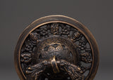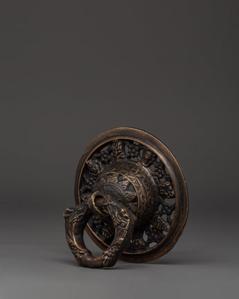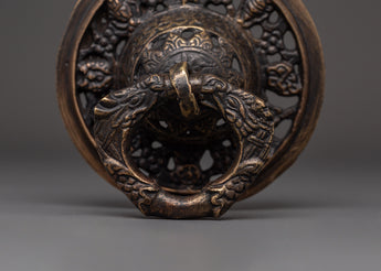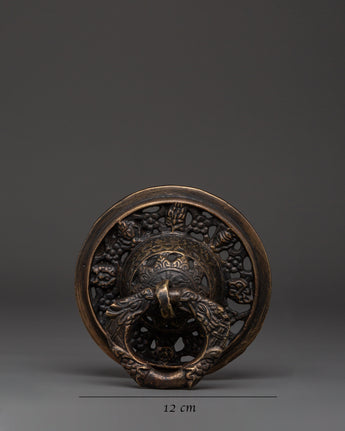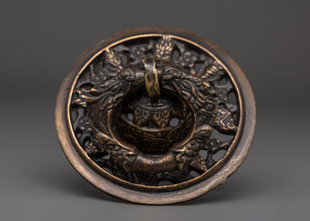 Elevate your entryway with the traditional elegance of this Handcrafted Brass Door Knocker, which combines traditional workmanship with vintage appeal. This stunning door knocker, measuring 12 cm in diameter, is mainly made from brass, ensuring its existence and a gorgeous vintage appearance. The beautiful blossom and abstract patterns emanate old-world charm, making it a stunning accent to any natural or vintage-themed door.