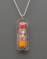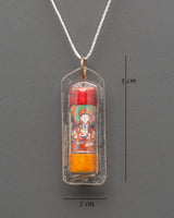 The Handcrafted Chenrezig Pendant is 5cm in height and 2cm in breadth, weighing about 0.002kg. This necklace, created with a plastic cover and canvas thread, depicts the benevolent god Chenrezig, also known as Avalokiteshvara, the Bodhisattva of compassion. It is designed to be lightweight and wearable, making it a valuable spiritual accessory that allows believers to bring Chenrezig's blessings and protective force with them wherever they go. This pendant is perfect for meditation, prayer, or as a daily reminder to practice compassion and mindfulness.
