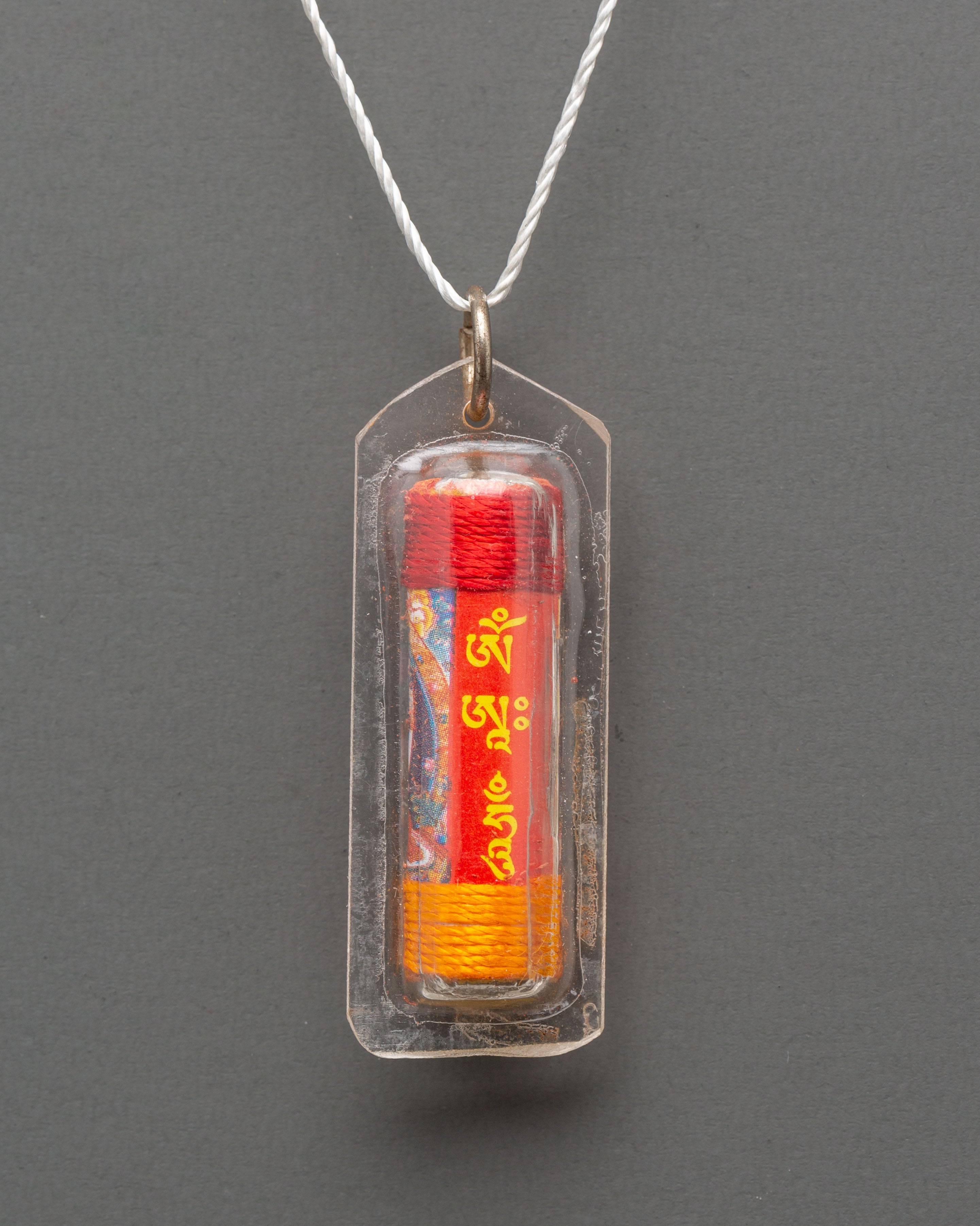 Handcrafted with care, the Handcrafted Chenrezig Pendant displays delicate intricacies of Chenrezig's sacred imagery and is framed with a protective plastic cover to preserve the complex pattern. The canvas thread gives a classic touch by blending functionality and spiritual symbolism. Wearing this pendant close to the heart allows the wearer to stay connected to Chenrezig's energy, which promotes peace, compassion, and mindfulness during daily tasks or spiritual practice.