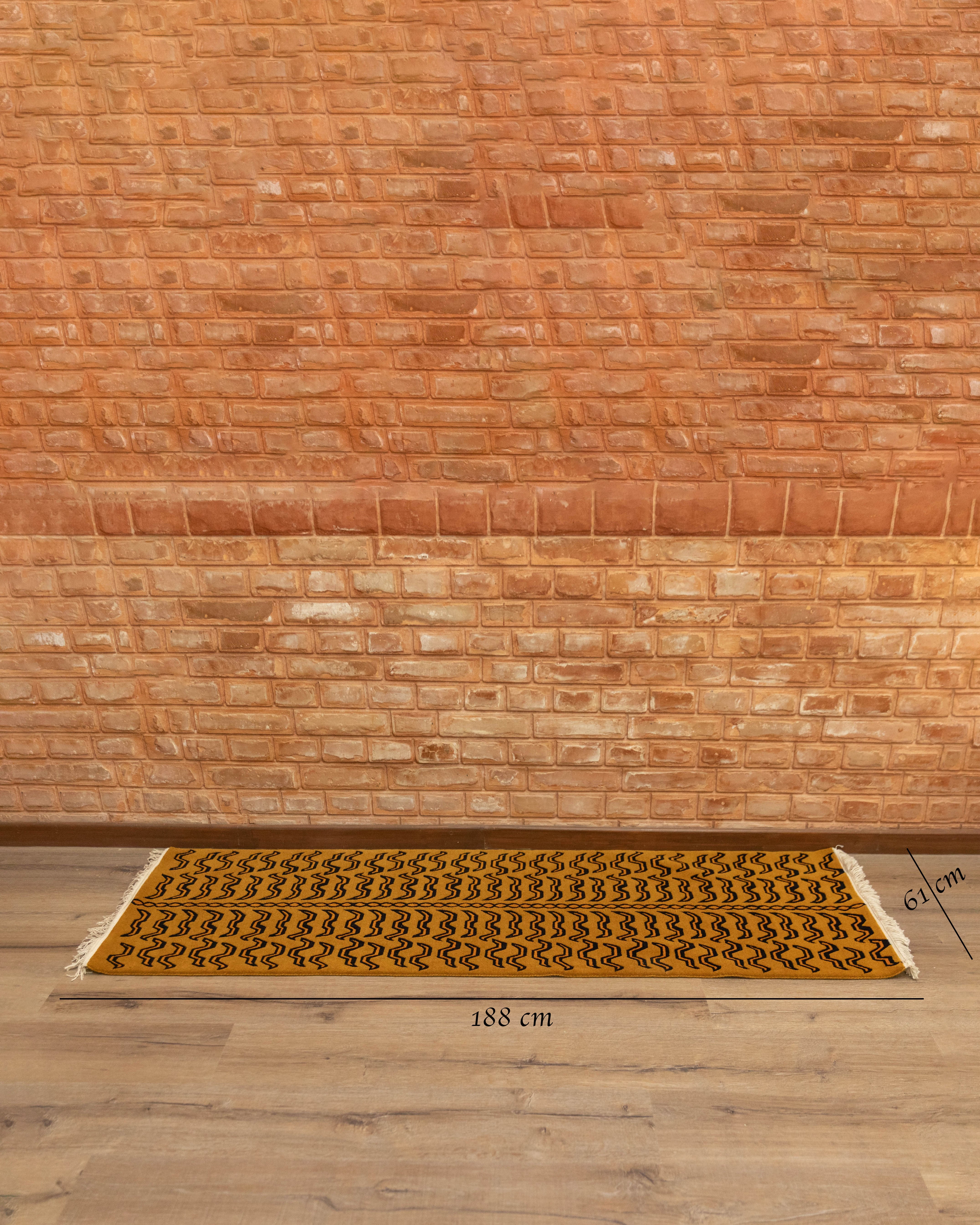 This Handwoven Tibetan Wool Rug is a luxurious addition to any space, measuring 61cm in length and 188cm in width, weighing 3.24kg. Made from 100% Tibetan and New Zealand wool, blended with viscose, this rug provides an incredibly soft, comfortable feel underfoot. The viscose blend gives this rug a natural sheen. The intricate design showcases the craftsmanship of Tibetan artisans, making it not only a functional piece but also a statement of artistry in your home.